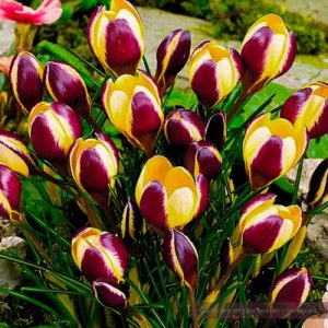 Крокус Геральд, также известный под синонимом Herald, является одним из самых популярных сортов. Этот ботанический вид выращивают в альпинариях, каменистых садах, на клумбах или газоне и используют для оформления бордюров вдоль дорожек. Высота крокуса составляет 7-10 см. Листья узкие, небольшие и зеленые. Размер цветков крупный – от 4 до 6 см. Форма цветков может быть как бокаловидной, так и чашевидной. Цветки простые. Окраска цветов желто-лиловая. Сроки цветения крокуса ранние – март-апрель. Продолжительность цветения составляет 7-10 дней.