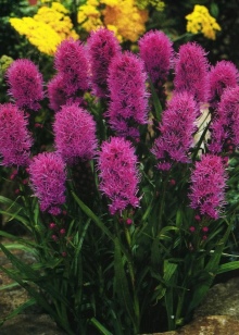 Наибольшая высота растения – 0,5 метра. При этом цветки окрашены в разные оттенки красного и фиолетового цветов. Узкие листья лиатриса сорта «Пикадор» собираются в розетку. Процесс цветения выпадает на середину лета и длится в течение 1–1,5 месяцев.