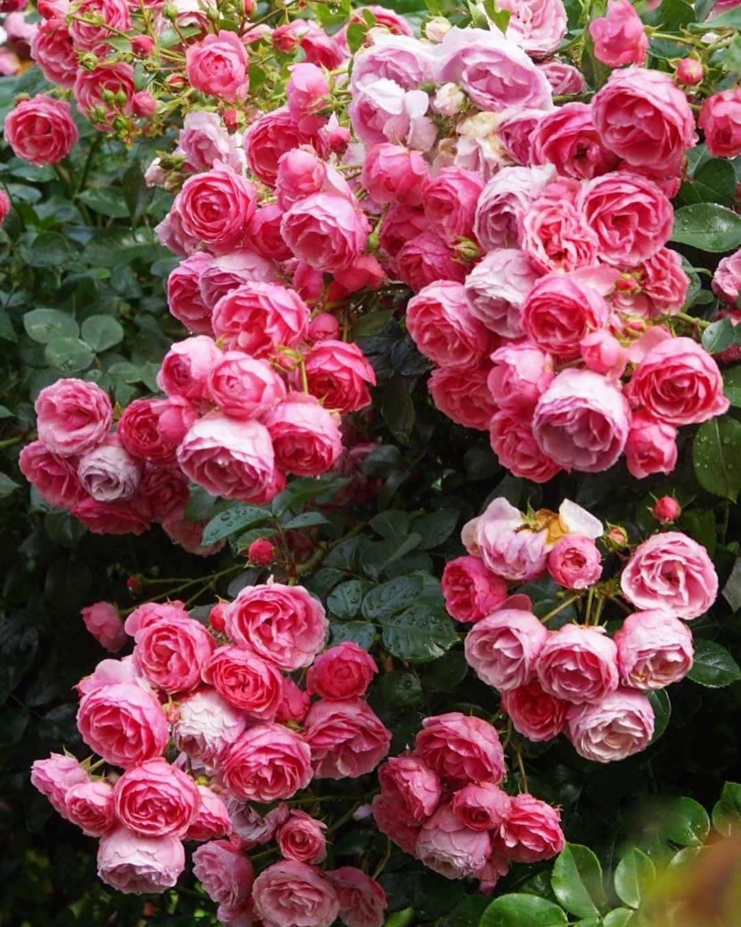 - превосходный декоративный вид куста, покрытого пышными махровыми цветками насыщенного розового оттенка